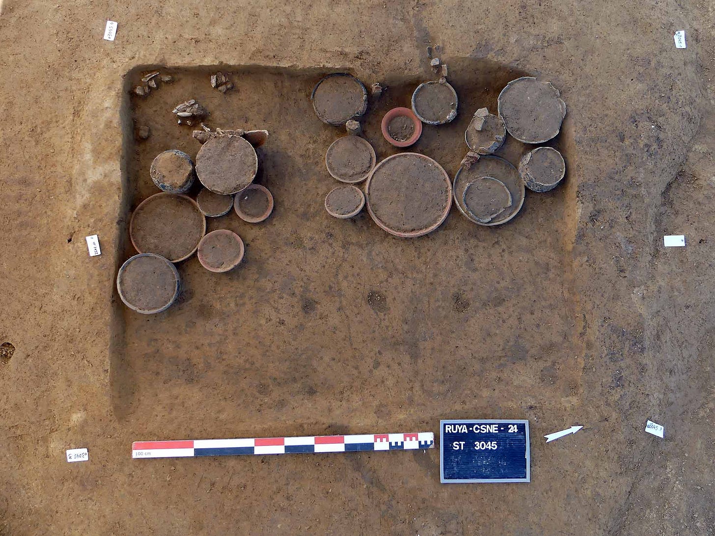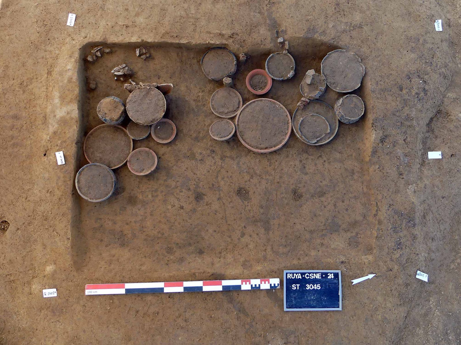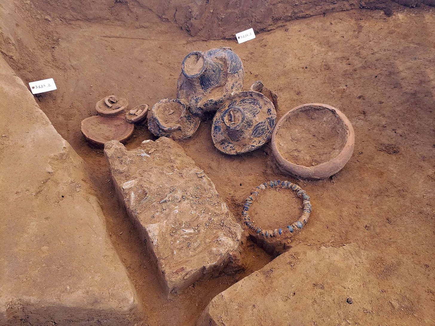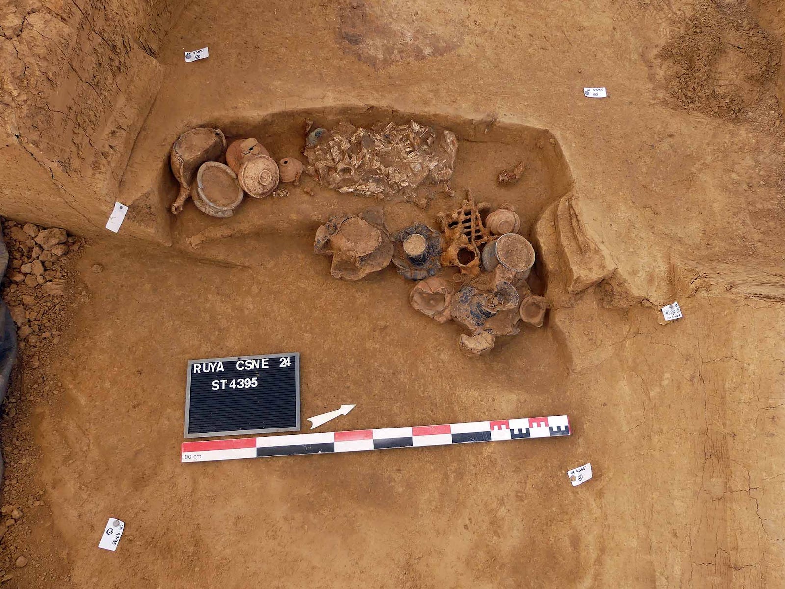Elsewhere on the same site, another burial area was found, with one particularly impressive cremation grave containing 19 ceramic grave goods. With all the pottery in one half of the grave, the archaeologists have speculated that the remainder may have once held long-decayed organic offerings such as flowers and clothing.